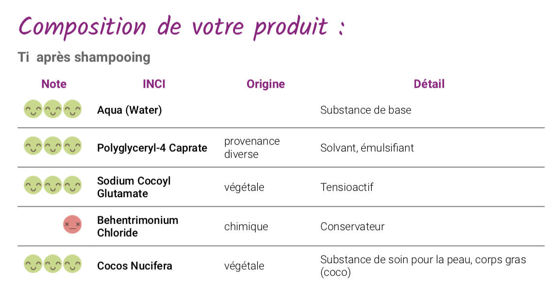 L’offre propose une gamme complète de produits divisés en fonction de vos besoins: il y ‘a des produits lavants et des produits coiffants. Elle est destinée aux enfants à partir de 3 ans ayant les cheveux bouclés, frisés et crépus. « Vegan », « hypoallergénique, elle est composé au minimum de « 97% d’origine naturels »; Enrichie en beurre de Mangue et huile d’Amande douce BIO.